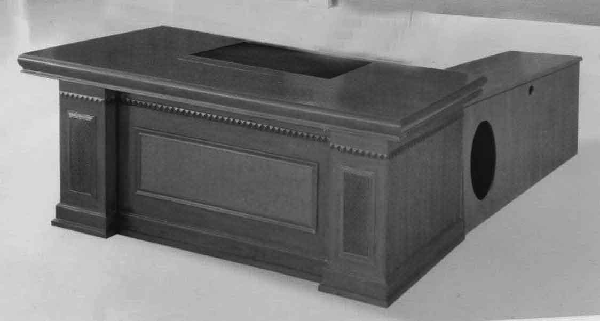 椅高1.0m,座高0.43m,选用优质黑色环保皮(1.0mm厚),经液态浸色及防潮、防污等工艺处理,皮面更加柔软舒适,光泽持久;木质扶手,扶手与办公桌同颜色;采用杜邦公司的PU成型发泡高密度海绵,表面有一层保护面,可防氧化,防碎,不变形。 样式图片如下: