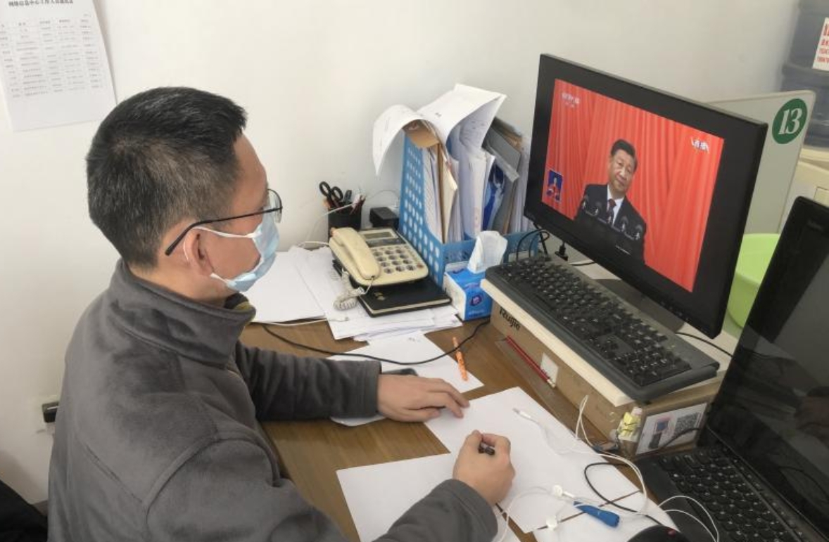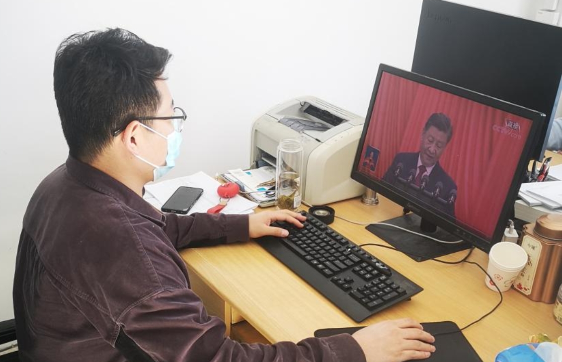 网络信息中心员工第一时间收听收看中国共产党第二十次全国代表大会开幕盛况