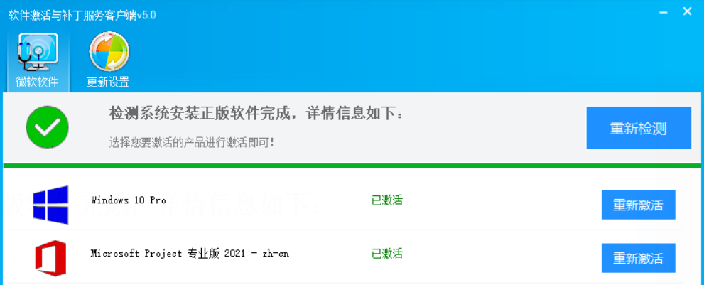 2、新版激活客户端可自动识别可激活的微软Windows、Office软件,如果无法识别则说明安装的版本与我所提供的版本不一致,请从正版化软件平台重新下载安装再进行激活。