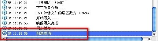 6.写入成功,消息框内显示如下图。制作完毕后,这时就可以使用该U盘进行系统安装。